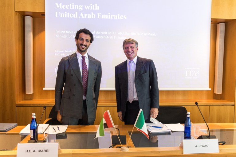 Assolombarda incontra gli Emirati Arabi - Alessandro Spada, Presidente di Assolombarda e Abdullah Bin Touq Al Marri, Ministro dell’Economia degli Emirati Arabi Uniti - 8 febbraio 2022