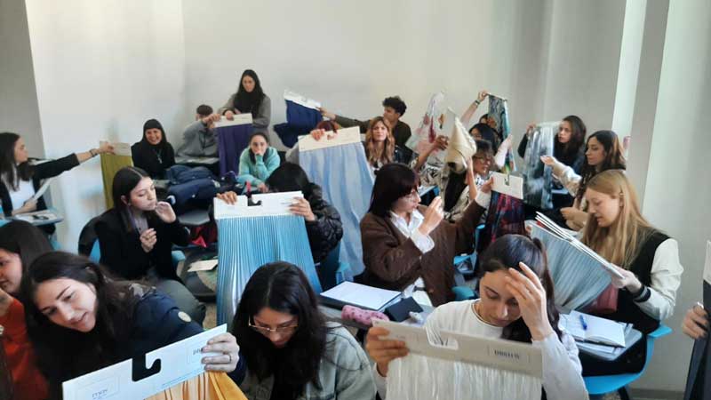Continuano le testimonianze delle aziende del Gruppo Moda nelle scuole del territorio. Federica de Bernardi del Nastrificio de Bernardi e Pierfilippo Longoni di Omniapiega hanno raccontato agli studenti dell'EcFop di Lissone - ente di formazione professionale - le loro realtà imprenditoriali, affrontando il tema del prodotto, della creatività, della ricerca applicata e della sostenibilità, con esposizione di materiale in aula e con riferimenti al mercato, alle tendenze e al tipo di clientela.