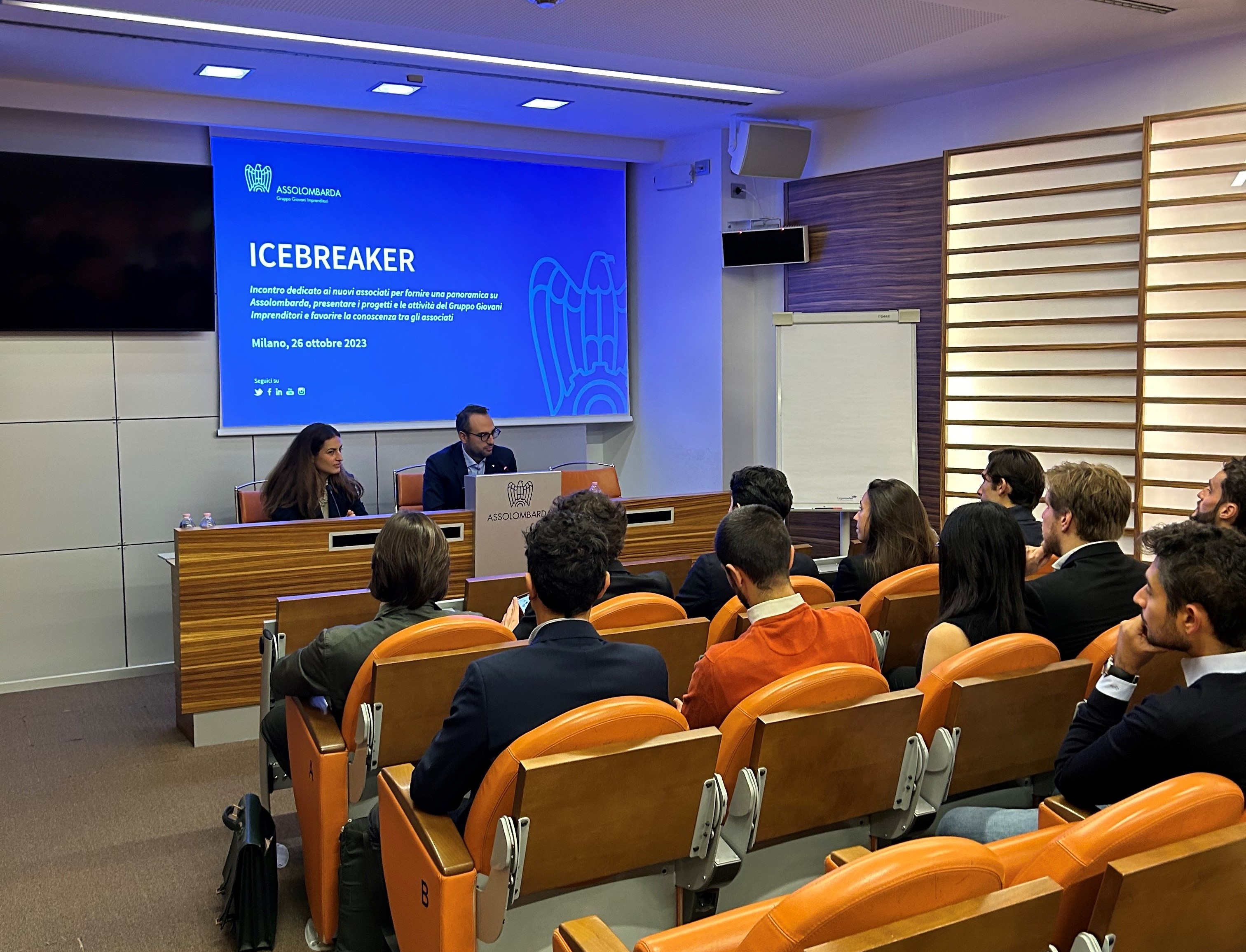 Durante l’incontro, Federico Chiarini, Presidente del Gruppo, ed Elena Siniscalchi, Vice Presidente con delega al Marketing e al Networking, forniscono una panoramica a 360° su Assolombarda, Gruppi, servizi, convenzioni e sulle attività del Gruppo Giovani Imprenditori.