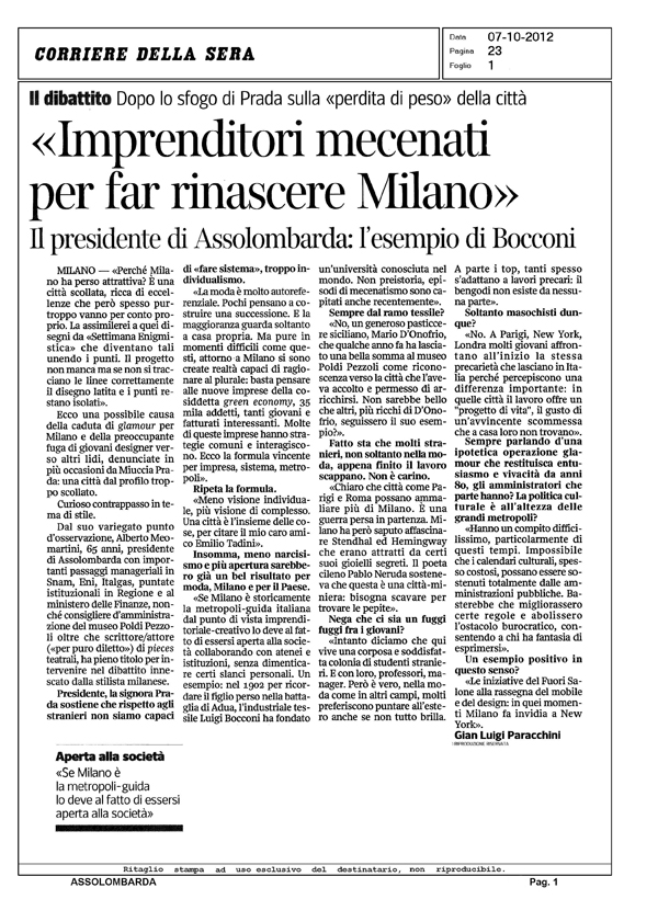 Intervista al Presidente di Assolombarda, Alberto Meomartini - Corriere della Sera.