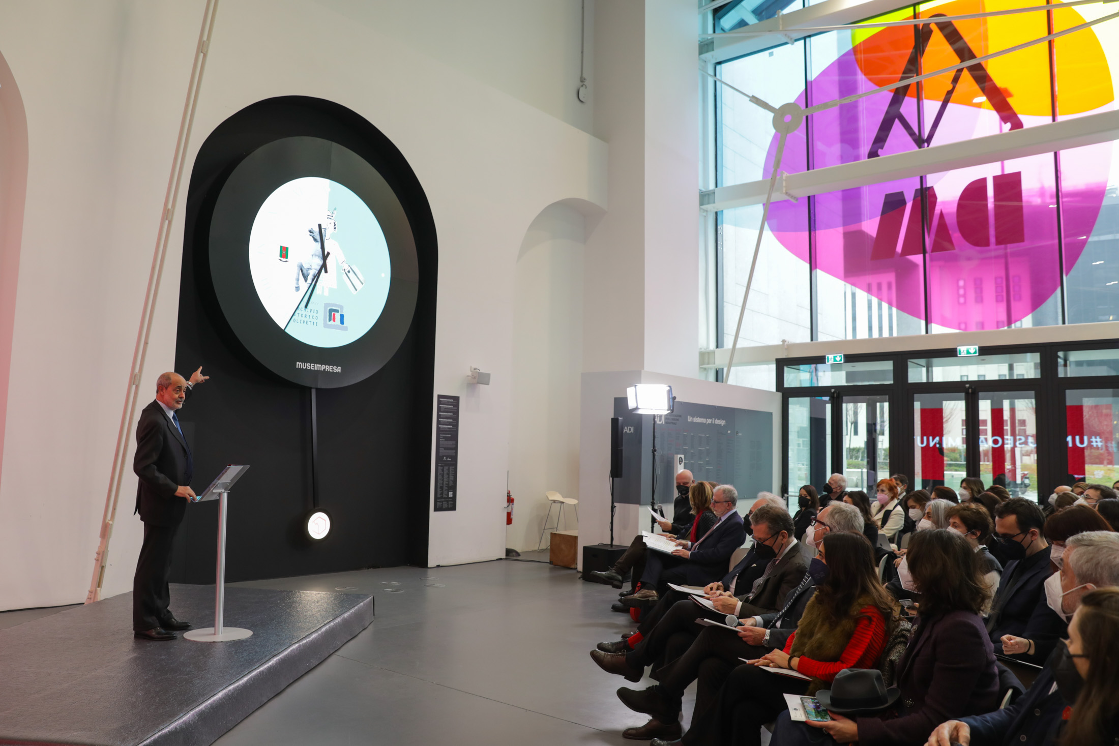 L’ADI Design Museum di Milano, dal 15 febbraio 2022, accoglie al suo ingresso i visitatori con un grande orologio digitale, installazione permanente di Museimpresa e Assolombarda. L’opera allo scandire del tempo svela oltre 110 musei e archivi di impresa delle nostre imprese associate che conservano e raccontano il saper fare, l’innovazione, la creatività e i design italiano.
